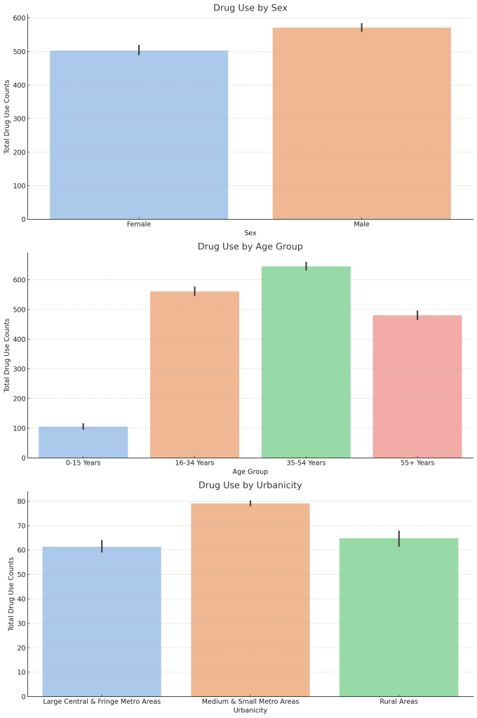 - Urban Versus Rural Needs: Urban areas, which showed a sharper increase in drug use, need robust urban-centric health infrastructure enhancements to cope with the density-related challenges. Conversely, rural areas require improved access to resources, with mobile health units and telehealth services expanding reach.